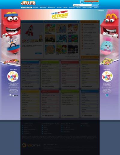 J’ai conçu des habillages de sites pour des campagnes Happy Meal, en créant des univers visuels immersifs adaptés à différentes licences et plateformes digitales.