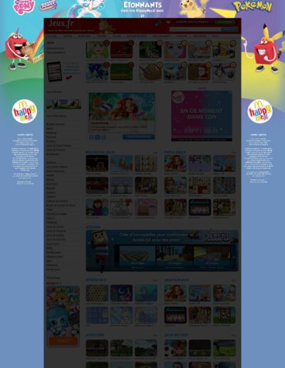 Ces campagnes sont diffusées sur des plateformes à forte audience (jeux en ligne jeunesse), nécessitant des formats spécifiques comme des habillages de sites.